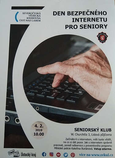 V rámci mezinárodního dne bezpečného internetu uspořádali strážníci městské policie z oddělení prevence kriminality a dopravní výchovy přednášku s názvem „Senioři v kyberprostoru“. Setkání proběhlo v Seniorském klubu Severočeské vědecké knihovny Ústí nad Labem. Zde se veřejnost dozvěděla, co vlastně je kyberprostor, internet a komunikační zařízení, jak a k čemu nám mají sloužit. Strážníci se seniory hovořili o internetové komunikaci, on-line nakupování, důvěryhodnosti a o serfování na internetu. Hlavní důraz byl kladen na bezpečnost. Na závěr byla velmi zajímavá diskuze mezi seniory a přednášejícími. Přednáška se uskutečnila v rámci preventivního projektu „Myslíme na vás“, zaměřeného na seniory a handicapované spoluobčany. Celý projekt probíhá pod záštitou primátora města Petra Nedvědického.