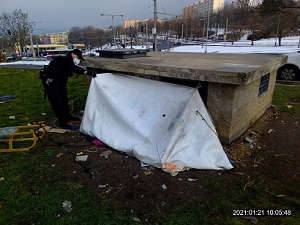 Dne 21.1.2021 v době od 10.00 hod., do 13,00 hod., proběhla v obvodě Severní Terasa preventivně bezpečnostní akce, při které se hlídky strážníků zaměřily na lidi bez domova, kteří nocují na veřejných prostranstvích, nebo se svá provizorní obydlí budují u veřejně prospěšných zařízení a svým jednáním ohrožují jejich bezpečný provoz. Tito lidé při ohřívání potravin používají otevřeného ohně a tím vzniká nebezpečí poškození těchto zařízení. Během opatření byly hlídkami zkontrolovány čtyři osoby, které strážníci poučili, na koho a kam se mohou obrátit v případech, kdy nemají kde spát nebo nemají co jíst. Z důvodu mrazivých podmínek, které v současné době panují, budou tyto kontroly prováděny častěji.