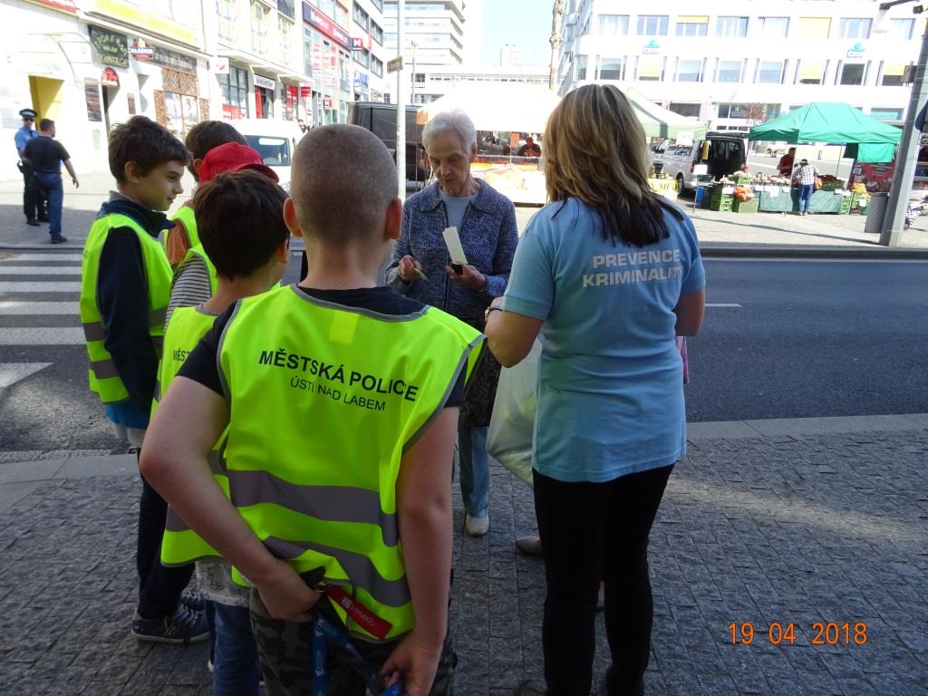 Preventivní akce Městské policie Ústí nad Labem zaměřená na bezpečné chování chodců na přechodech proběhla dne 19. 4. 2018. To vyrazila do centra města společná hlídka strážníků a dětí ze základní školy E. Krásnohorské, která dosáhla nejlepších výsledků při výuce dopravní výchovy. Kontrola se zaměřila na správné přecházení vozovky a chování na přechodě pro chodce. Odměnou pro vzorné chodce byly reflexní samolepky a pomůcky, které pomáhají ochránit za snížené viditelnosti. Akce se zúčastnil i regionální manažer Besipu. Celý projekt „Duben – měsíc bezpečnosti“ zaštítila primátorka města Ústí nad Labem Věra Nechybová.