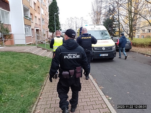 Dne 22.11.2023 v 11:50 hod., byla na žádost operačního střediska městské policie vyslána hlídka strážníků do ulice Višňová, z důvodu telefonického oznámení na tísňovou linku městské policie, kdy oznamovatel operátorovi nahlásil, že ve zmiňované ulici někdo ze sedmého patra vyhazuje z okna na chodník různé věci. Na místo se zároveň dostavila hlídka Policie ČR a hlídka strážníků ze skupiny operačního zákroku, které se společně se vydaly do zmiňovaného patra, kde zjistily muže středního věku z Děčína, který jim sdělil, že měl nějaké neshody se svým kamarádem u kterého přespával a chtěl si vzít z bytu svoje věci, ale ty jeho kamarád začal vyhazovat z okna. Před příchodem hlídky si dotyčný sám přivolal zdravotná záchrannou službu, která si muže odvezla do Masarykovy nemocnice k vyšetření. Vzhledem ke skutečnosti, že dotyčný je pacientem psychiatrického oddělení, byla na žádost zdravotníků provedena asistence při převozu muže do Masarykovy nemocnice. Po vyšetření zdravotního stavu dotyčného, rozhodl zdravotní personál, že muž bude převezen na protialkoholní záchytnou stanici v Teplicích. Jelikož by hlídka strážníků čekala na nemocniční sanitku Masarykovy nemocnice cca. 1 hod. ( z důvodu vytíženosti vozidel záchranářů ), bylo s operačním střediskem městské policie domluveno, že se na převoz použije sanitka městské policie z Krásného Března.