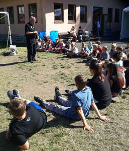 Doba prázdnin je nenávratně pryč a zůstávají již jen vzpomínky. Nejen mnoho dětí školního a předškolního věku, ale i strážníci městské policie budou vzpomínat na letní příměstské tábory, kam strážníci za dětmi dojížděli, aby jim „oprášili“ nebo nově vštěpovali vědomosti, které se jim budou hodit až půjdou opět do školy. Děti na táborech navštěvovali nejen strážníci z oddělení prevence kriminality a dopravní výchovy, kteří se snaží dětem i během školního roku vštípit znalosti z dopravy nebo ze zdravovědy a první pomoci, ale navštěvovali je i strážníci ze skupiny operačního zákroku, kteří „ malým táborníkům“ formou ukázek přibližovali svoji sice nelehkou, ale zajímavou práci. Děti při těchto ukázkách nejvíce obdivovali naše služební psy a sebeobranu, kterou si na strážnících mohli pod dozorem lektorů sami na místě vyzkoušet. Na zdravotním táboře na Orlíku se velkému zájmu těšily projížďky na lodi, kde strážníci vyměnili své uniformy za dobové oblečení korzárů a pirátů. Za dobu prázdnin proběhlo na dvanáct táborových setkání dětí se strážníky, kdy tato setkání se již stala letitou tradicí.