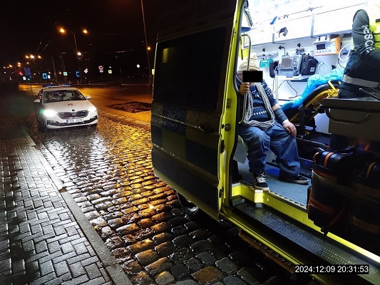 Dne 9.12.2024 ve 20:05h byla na žádost operačního střediska městské policie provedena kontrola v ulici Sociální péče, odkud na tísňovou linku městských strážníků telefonoval oznamovatel, který operátora upozornil na neznámou osobu, ležící na zemi na zastávce MHD - Sociální péče. Po příjezdu hlídky na místo se zde již nacházela osoba, která se pokoušela dotyčného ze země zvednout. Společně se strážníky byl muž středního věku, bytem Praha, posazen na lavičku. Muž si poté hlídce stěžoval na bolest srdce a nevolnost, proto byla na místo přivolána zdravotní záchranná služba, která si dotyčného od strážníků převzala a odvezla do Masarykovy nemocnice k vyšetření.