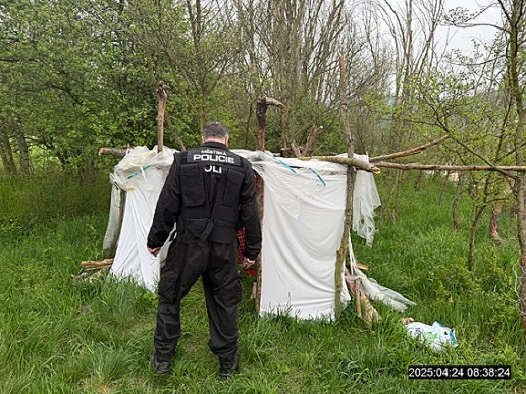 Dne 24.4.2025 v dopoledních hodinách, bylo městskou policií přijato oznámení, o přístřešku na Mariánské skále, viditelném z ulice Velká Hradební. Na místo byla vyslána hlídka strážníků, která zjistila, že provizorní přístřešek byl vybudován bezdomovci, kteří se ale v době kontroly na místě nenacházeli. V okolí zmiňovaného přístřešku se nacházel nepořádek, který zde po bezdomovcích zbyl. Tento přístřešek byl hlídkou rozebrán a z okraje skály odstraněn. Materiál, který po provizorním bydlení bezdomovců zůstal na místě byl složen na jednu hromadu a v následujících dnech bude odvezen na skládku.
