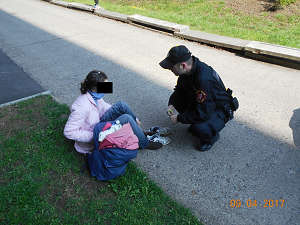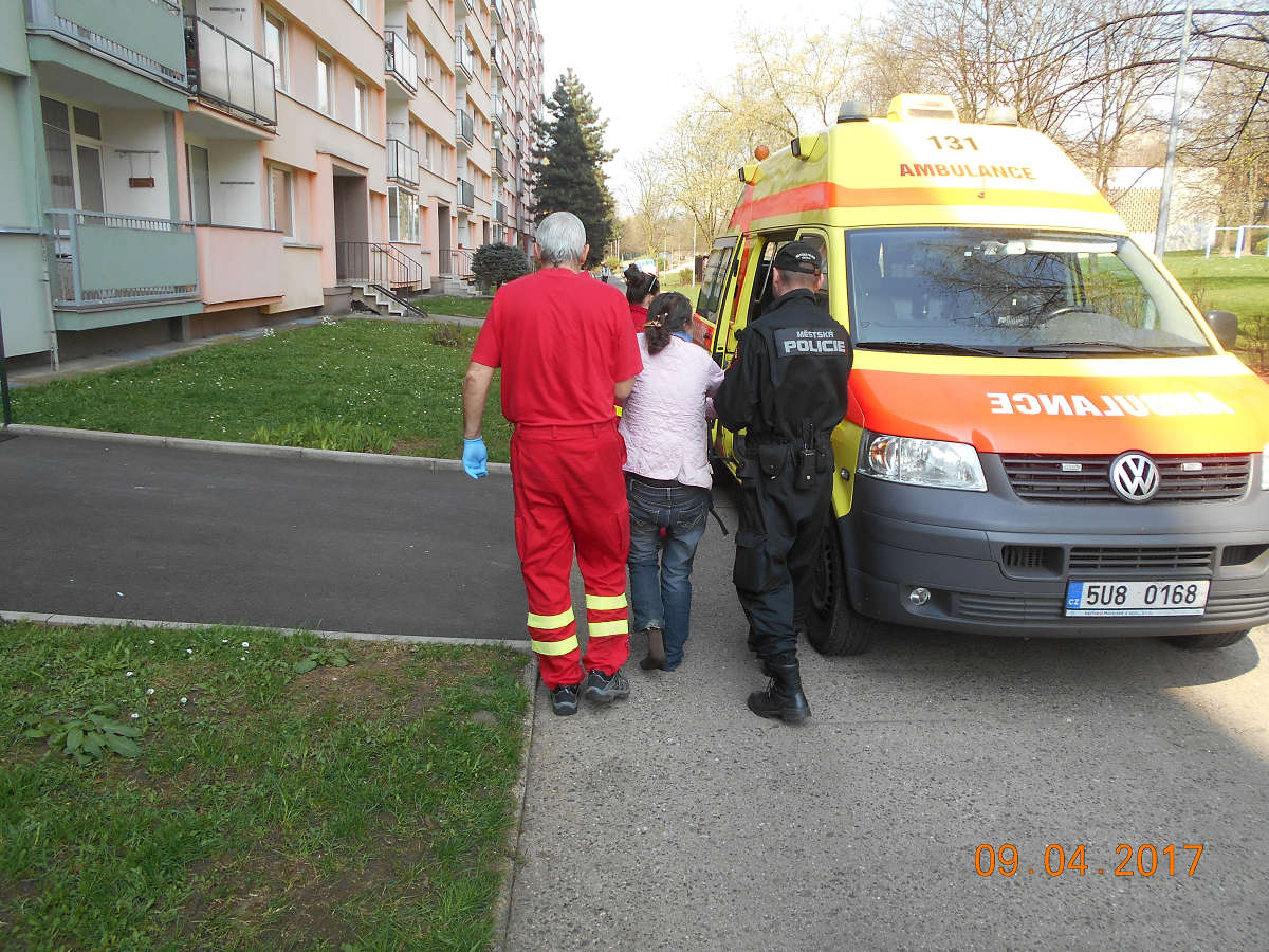 Dne 9.4.2017 v 12,20 hod., hlídka strážníků, která prováděla pochůzkovou činnost v obvodu Severní Terasy si v ulici Ladova všimla neznámé ženy, která seděla na trávníku, měla nepřítomný pohled a něco si pro sebe povídala. Strážníci se dotyčné ženy zeptali, zda je v pořádku a jestli nepotřebuje s něčím pomoci. Na tento dotaz žena pouze tiše promlouvala o konci světa a dále se tvářila nepřítomně. Z těchto důvodů strážníci na místo přivolali zdravotní záchrannou službu, která si ženu převezla do Masarykovy nemocnice k vyšetření. Šetřením bylo zjištěno, že se jedná o Martinu V.(1977), bytem Ústí nad Labem.