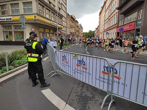 Dne 17.9.2022 proběhla v našem městě jedna z nejvýznamnějších sportovních akcí roku, a to již dvanáctý ročník ½ Maratonu, kterého se v rámci bezpečnosti zúčastnili vedle policistů i strážníci městské policie. Ti již v brzkých ranních hodinách obsadili předem určené pozice, a to především na křižovatkách, kudy závodníci probíhali. Na padesát strážníků dbalo nejen na klidný a nerušený průběh závodu, ale podávali informace občanům o změnách tras městské hromadné dopravy a odpovídali kolemjdoucím na různé dotazy, týkající se samotného programu tohoto sportovního svátku. Během všech disciplín, kterých se během dne zúčastnilo téměř čtyři tisíce běžců, nezaznamenali strážníci žádné problémy, které by narušily zdárný průběh, jak samotných závodů, tak doprovodného programu. Městská policie měla zastoupení i v samotném závodě, kdy na trať tohoto náročného běhu vyrazili čtyři strážnice a jeden strážník. Náročnost všech běhů umocňovalo sychravé počasí, kdy mnozí zúčastnění si sáhli na samé dno svých sil. Hlavní závod, který byl naplánován na patnáctou hodinu, odstartoval přesně na čas primátor Statutárního města Ústí nad Labem Petr Nedvědický. Celé opatření skončilo pro strážníky po dvacáté první hodině, kdy byly odvezeny všechny zábrany a město uklizeno od odpadků.