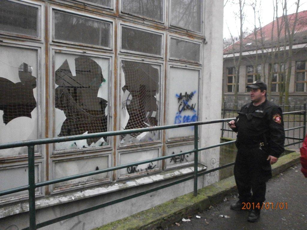 Dne 1.1.2014 v 15,10 hod., prováděla hlídka strážníků pochůzkovou činnost v ulici Studentská, kde si všimla rozbitých oken u tělocvičny, na budově základní školy Hluboká. Přes operační středisko městské policie byla na místo přivolána ředitelka zmíněné školy, zda zde nedošlo ke vloupání do objektu, což se nepotvrdilo. Vzhledem k výši škody, byla na místo přivolána Policie ČR, která si celý případ převzala k dalšímu šetření.