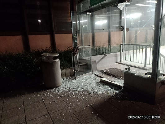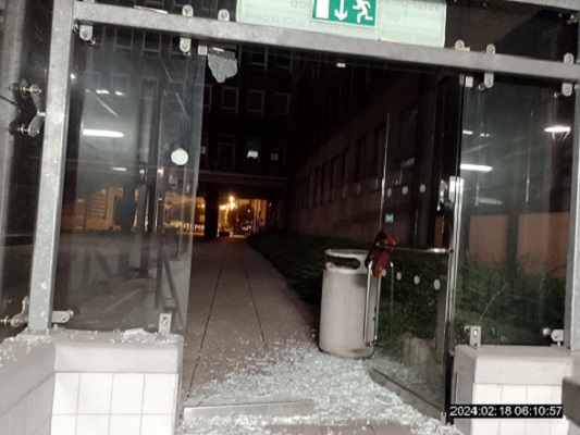 Dne 18.2.2024 v 06,10 hod., byla operačním střediskem městské policie vyslána hlídka strážníků do atria Magistrátu města Ústí nad Labem, kde došlo k rozbití skleněné výplně dveří u v vchodu do podzemních garáží. Na místě již řešila celou událost i přivolaná hlídka Policie ČR. Strážníci setrvali na místě až do vyřešení celé události, a to z důvodu přítomnosti většího počtu závadových osob. O celé události vyrozuměn zaměstnanec garáží a poté i vedoucí odboru hospodářské správy. Jak bude celý případ kvalifikován rozhodne až vyčíslení vzniklé škody. Na místě pořízena fotodokumentace.