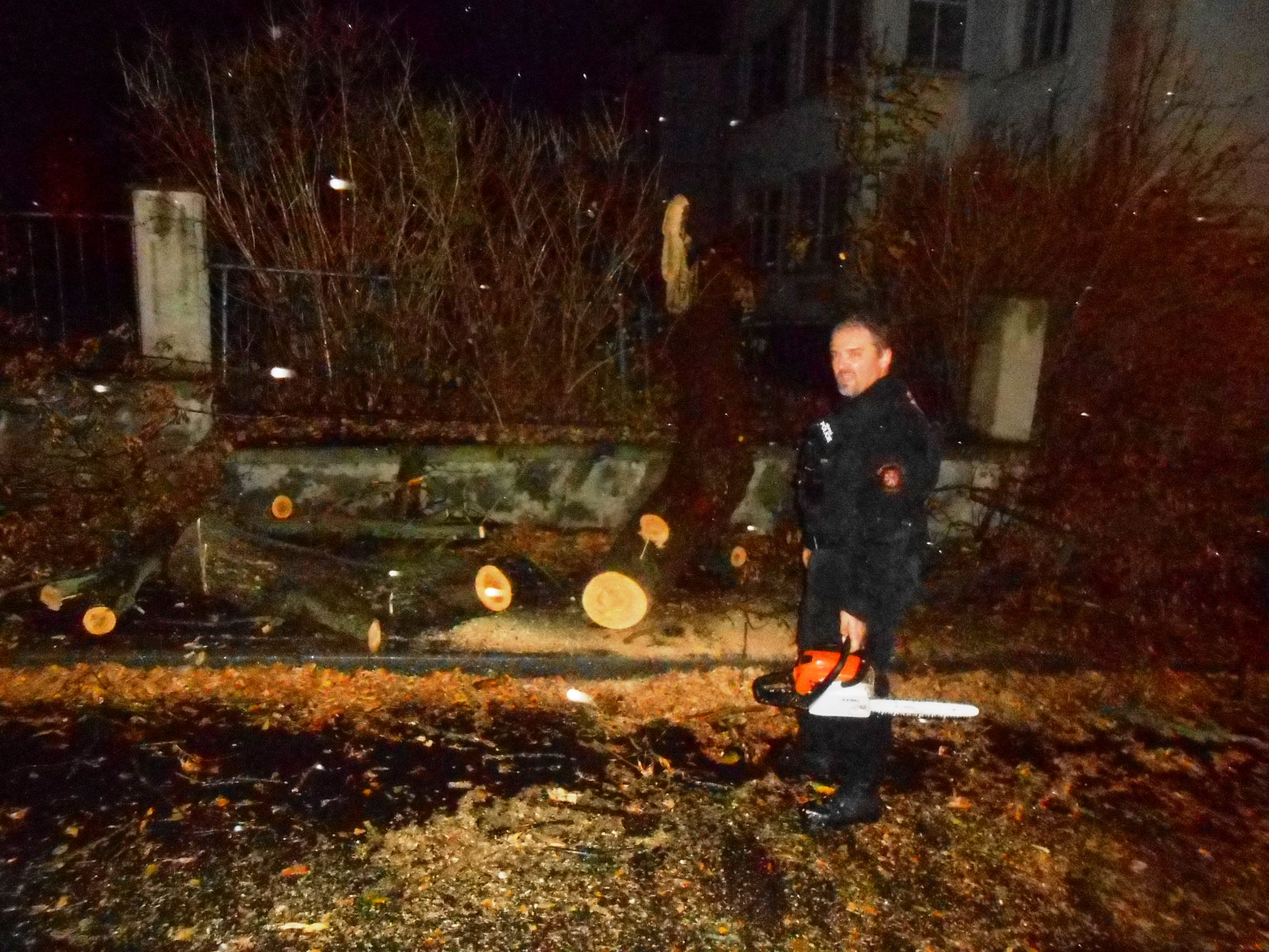 Dne 24.10.2018 v ranních hodinách, vyjížděla hlídka strážníků ze skupiny operačního zákroku do ulice U Panského dvora, z důvodu telefonického oznámení, že zde přes silnici leží vyvrácený strom, který ohrožuje bezpečnost a plynulost provozu na pozemní komunikaci. Strážníci na místě zjistili, že strom se vyvrátil díky siným poryvům větru. Hlídka na místě strom rozřezala a uklidila z vozovky.