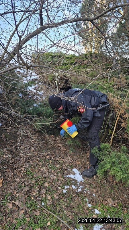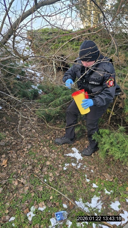 Dne 22.1.2026 ve 13:34 hod., přijalo operační středisko městské policie zprávu o výskytu infekčního materiálu v ulici Stará, v blízkosti základní školy. Na místo byla vyslána hlídka strážníků, ke které se na uvedeném místě přihlásil oznamovatel a na místo výskytu hlídku zavedl. Strážníci zde nalezli injekční stříkačku a jiný drobný infekční materiál, který posbírali a uložili do sběrného boxu.