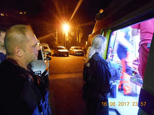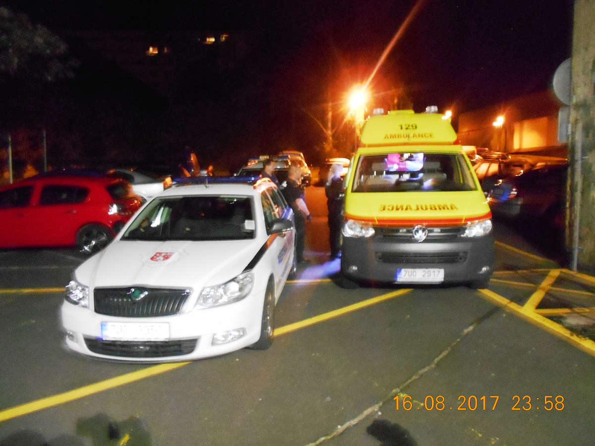 Dne 16.8.2017 ve 23.30 hod., byla na žádost operačního střediska městské policie vyslána hlídka strážníků do ulice Sociální péče, odkud na tísňovou linku městské policie telefonoval muž, který operátorovi sdělil, že chce násilně ukončit svůj život skokem z okna. Strážníci při ověřování této informace zaklepali na dveře bytu, kde měl oznamovatel bydlet, ten jim otevřel a potvrdil jim, že na tísňovou linku telefonoval skutečně on sám. Šetřením bylo zjištěno, že se jedná o Romana L.(1967), který dále strážníkům sdělil, že asi před dvaceti minutami spolykal dvě plata nějakých prášků a zapil je pivem. Z těchto důvodů byla na místo ihned přivolána zdravotní záchranná služba, která zůstala se strážníky ve stálém telefonickém spojení a dávala jim pokyny, jak mají dotyčnému poskytnout první pomoc a jak mají postupovat. Na jejich doporučení hlídka donutila jmenovaného vypít sklenici vody s větším množstvím kuchyňské soli, aby došlo u dotyčného k dávivému účinku. Protože podle vyjadřování muže již začaly prášky účinkovat, udržovali strážníci muže v bdělém stavu až do příjezdu zdravotníků, kteří si dotyčného odvezli do Masarykovy nemocnice k lékařskému vyšetření.