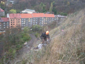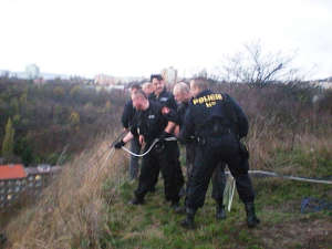 Dne 07.11.2013 v 16:15 hod., na žádost operačního střediska městské policie byla vyslána hlídka strážníků na Mariánskou skálu, kde se měl nacházet neznámý muž, na okraji skály ve svahu nad autocentrem BEK, který volal o pomoc. Na místo se s hlídkou strážníků zároveň dostavil i psovod se služebním psem. Hlídky se společně vydaly na louku směrem ke skále, kde služební pes zachytil pachovou stopu a dovedl je až na místo, kde se nacházel neznámý muž,který se zachytil o skalní výčnělek, na kterém ležel na zádech a povídal si sám pro sebe. Strážníci okamžitě začali s mužem komunikovat a radili mu, jak se má v této situaci chovat a co má dělat. Dále byla na místo přivolána Policie ČR, hasiči a rychlá záchranná služba. Strážníci ze skupiny operativního zásahu k muži slanili, zabezpečili ho proti pádu a společně s Policií ČR a hasiči muže pomocí lezecké techniky vytáhli na bezpečné místo. Šetřením bylo zjištěno, že se jedná o Vladimíra H.(1962), který přítomným sdělil, že chtěl skokem ze skály ukončit svůj život. Po prvotních úkonech byl jmenovaný převezen rychlou záchrannou službou do Masarykovy nemocnice k vyšetření. Tento týden to byl již druhý případ, kdy někdo chtěl ukončit svůj život skokem z Mariánské skály.