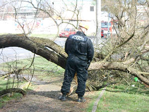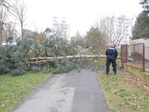 Dne 1.4.2015 v 11,05 hod., byly na žádost operačního střediska městské policie provedeny výjezdy strážníků do obvodu Předlic a Střekova, kde se vlivem silného větru vyvrátili dva vzrostlé stromy, které spadly na chodník a znemožnily bezpečný pohyb chodců. Strážníci na místě spadlé stromy pořezali a chodníky zprůchodnili.
