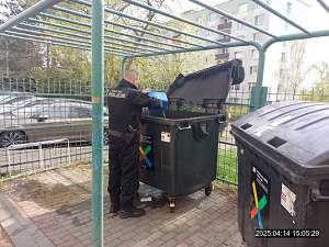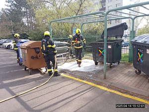 Dne 14.4.2025 v 15,05 hod., byla na žádost operačního střediska městské policie vyslána hlídka strážníků do ulice Jizerská, odkud na tísňovou linku městské policie telefonoval oznamovatel, který operátorovi sdělil, že v dané ulici doutná kontejner na domovní odpad. Strážníci na místě zjistili popelnici, ve které začínal hořet odpad. Hlídka začala oheň hasit vodou a v hasební činnosti pokračovali až do příjezdu hasičů, kteří byli na místo strážníky přivoláni. Ti během chvíle oheň uhasili.