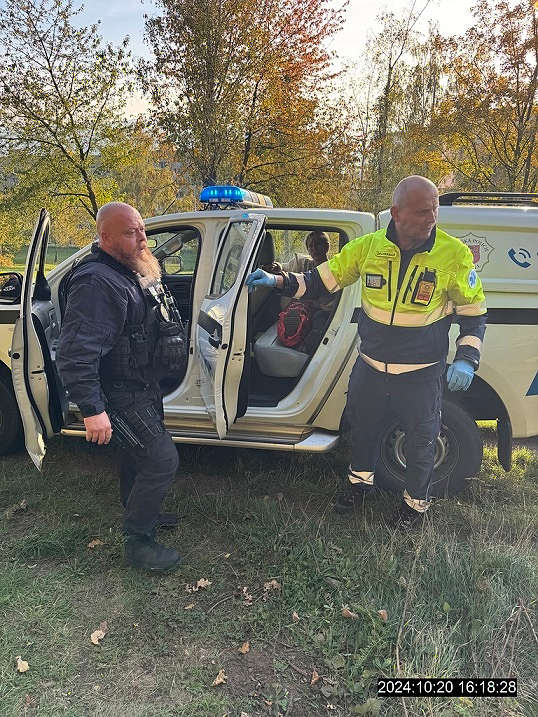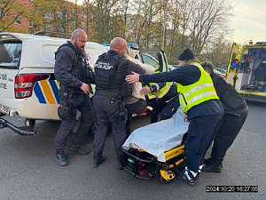 Dne 20.10.2024 v 16:00 hod., byla na žádost operačního střediska městské policie vyslána hlídka strážníků ze skupiny operačního zákroku do ulice Šumavská – Brandtova, z důvodu žádosti zdravotní záchranné služby o součinnost při transportu pacientky, která si zlomila kotník. Hlídka přijela na danou adresu, kde na ně čekali zdravotníci, kteří strážníkům sdělili, že zraněná se nachází v těžko přístupném terénu, který je podmáčený a na transport ženy je zapotřebí více lidí. Poté byla dotyčná společnými silami strážníků a zdravotníků snesena ke služebnímu vozidlu strážníků, kterým byla následně převezena do ulice Šumavská, kde na ně čekala sanitka. Tou pak byla žena odvezena do Masarykovy nemocnice k ošetření.