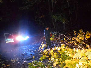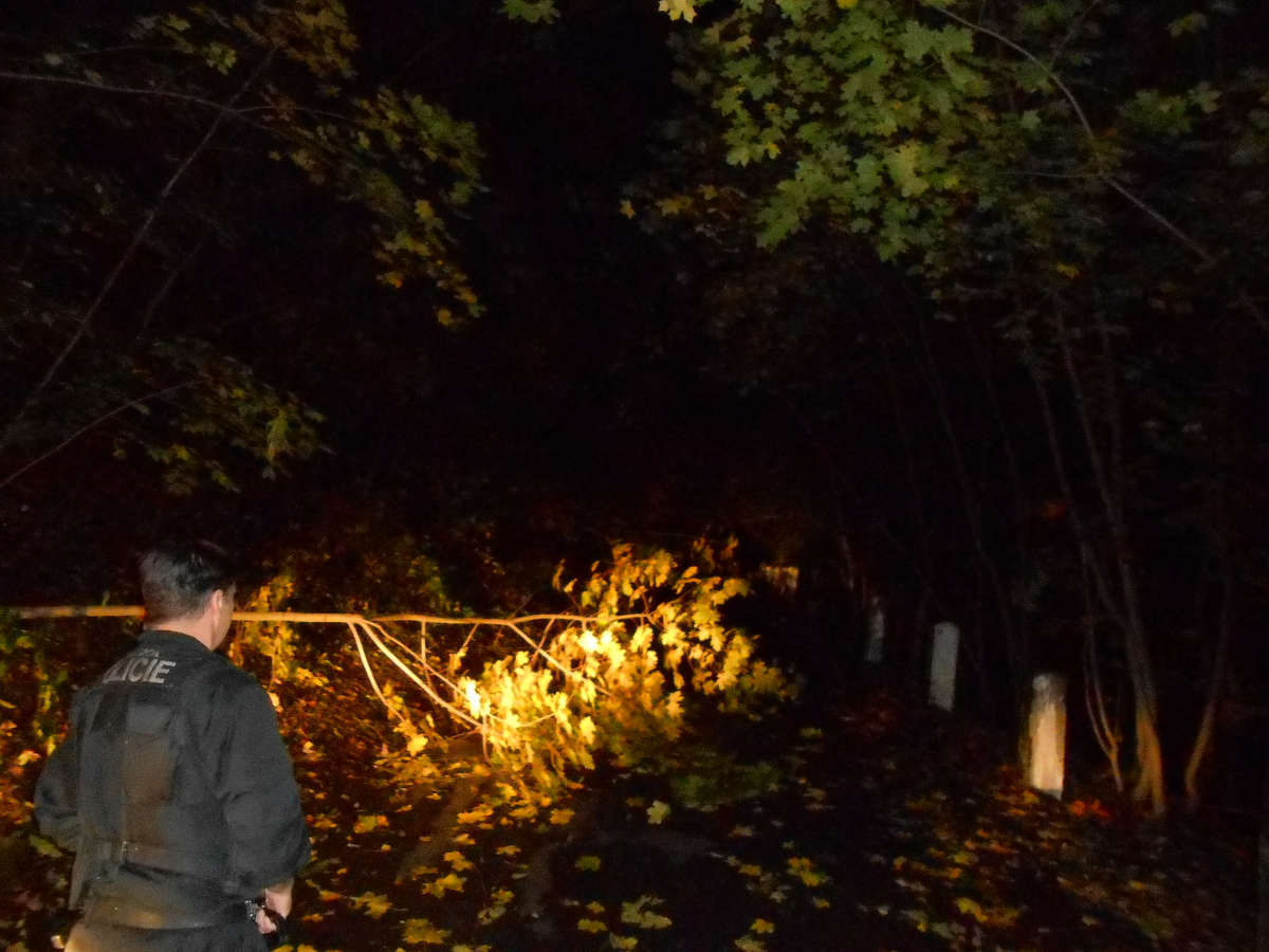 Dne 29.10.2014 v 23,10 hod., prováděla hlídka strážníků kontrolní činnost v obvodu Neštěmic, kde si v sídlišti Skalka všimla na vozovce spadlého stromu, který se zřejmě zlomil při poryvu větru. Strážníci ze skupiny operačního zákroku strom rozřezali a z vozovky odklidili.