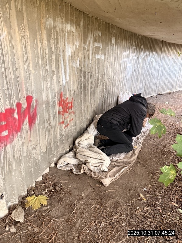 Dne 31.10.2025 v ranních hodinách, prováděla hlídka strážníků kontrolní činnost v obvodu Severní Terasa, kde v Centrálním parku zjistili spícího bezdomovce.