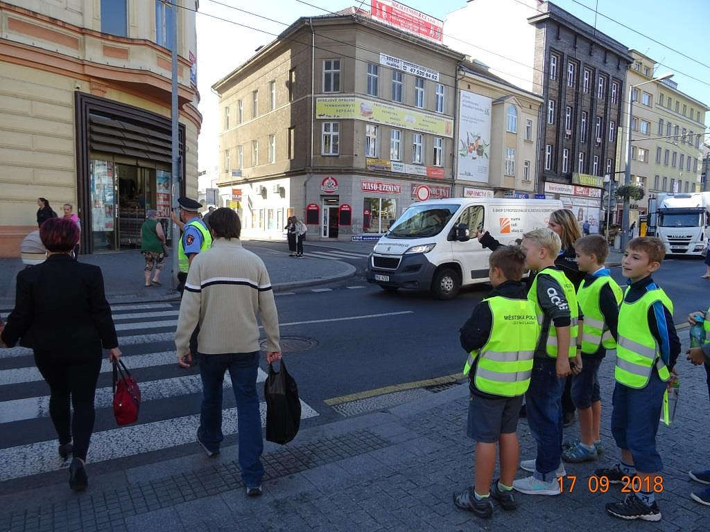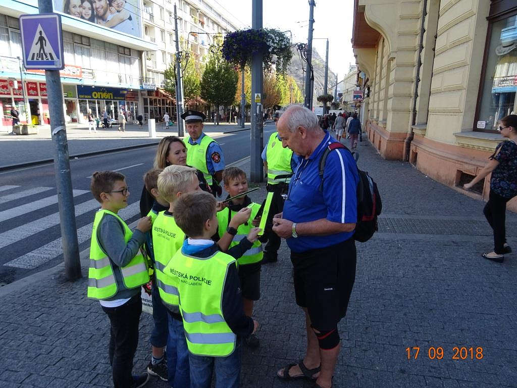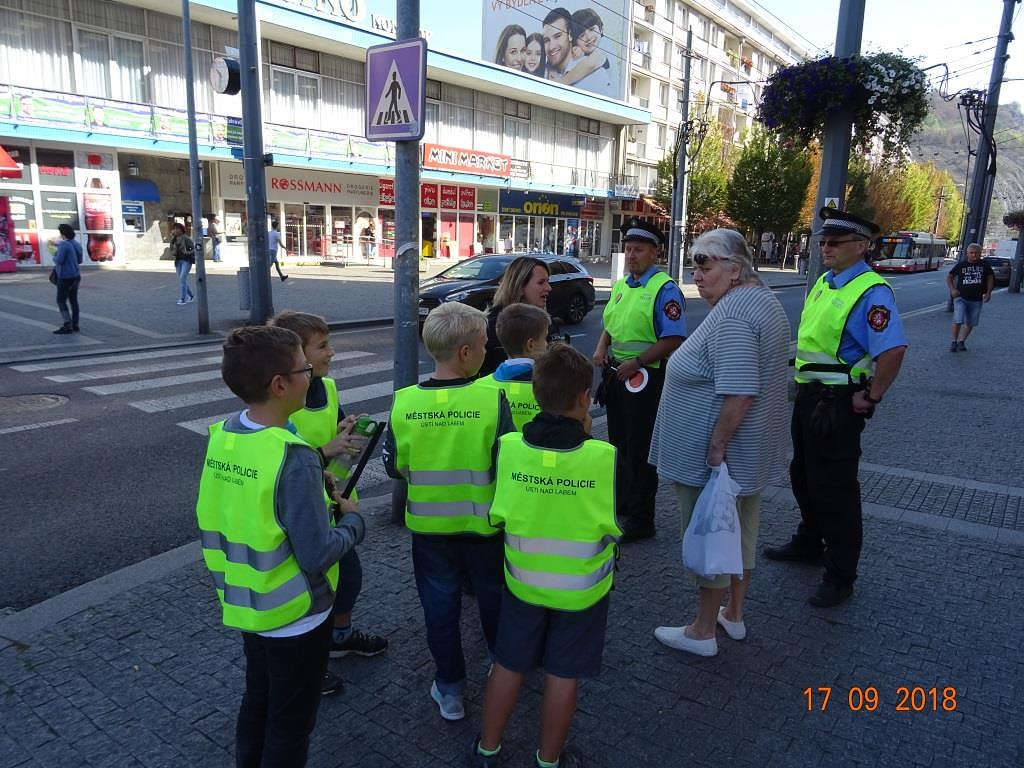 Dne 17. 9. 2018 vyrazila do centra města společná hlídka strážníků městské policie a dětí ze základní školy Elišky Krásnohorské. Tato akce s názvem: „Kontrola oprávněnosti vjezdu do centra města a správného přecházení“, se uskutečnila s dětmi z vybrané základní školy, která absolvovala výuku dopravní výchovy na Dopravním hřišti Městské policie Ústí nad Labem. Motto: Buďme ohleduplní a opatrní. Jedině tak se dá vyhnout přecpaným centrům měst a dopravním nehodám. Společná hlídka byla jednou z mnoha preventivních akcí městské policie, která se tímto zapojila k tradiční celoevropské akci Evropský týden mobility, která probíhá ve dnech 16. – 22. září. Zdravé město Ústí nad Labem ve spolupráci s mnoha významnými místními partnery připravilo několik zajímavých akcí, určených jak pro děti, tak pro dospělé. V rámci této osvětové kampaně chce tato upozornit na možnosti využívání udržitelných způsobů dopravy, které nezatěžují životní prostředí a kvalitu života ve městě tolik, jako doprava automobilová a na bezpečnost účastníku silničního provozu. Při společné hlídce přímo v terénu mají děti možnost získávat zkušenosti ze silničního provozu. Tentokrát probíhala kontrola správného přecházení komunikace a oprávněnost vjezdu vozidel na Mírové náměstí. Každý kontrolovaný řidič a chodec obdržel od dětí reflexní ochranné prvky, které jim pro tyto účely věnovalo vedení města.