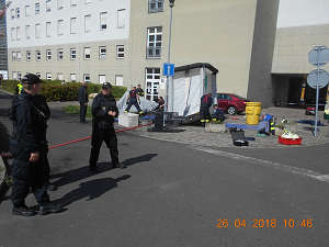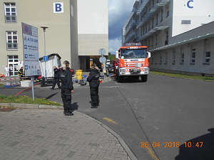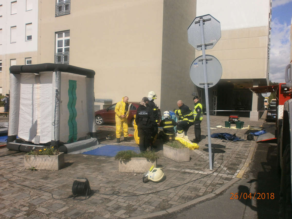 Dne 26.4.2018 v 10,20 hod., byl na žádost operačního střediska městské policie proveden výjezd strážníků do Masarykovy nemocnice, odkud požádali hasiči o součinnost s městskou policií při řešení situace, kdy byli v prostoru areálu nemocnice ošetřované osoby, poleptané chemickou látkou při výbuchu chemičky v Boleticích. Strážníci na místě po dohodě s velitelem zásahu zajišťovali prostor proti vstupu nepovolaných osob.