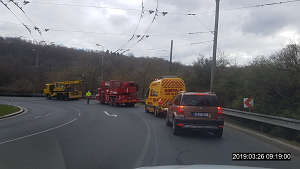 Dne 26.3.2019 v 08.40 hod., byla na žádost operačního střediska městské policie vyslána hlídka strážníků do ulice Hoření, kde dle oznamovatele mělo stát porouchané vozidlo HZS, které tvořilo překážku v silničním provozu. Z tohoto důvodu byli strážníci požádáni o usměrňování provozu na uvedené komunikaci. Na žádost hasičů pak byl hlídkou proveden doprovod tohoto vozidla do ulice Přístavní. Z důvodu nefunkčnosti vozidla HZS, byla strážníky při jeho přepravě zastavována doprava na všech křižovatkách.