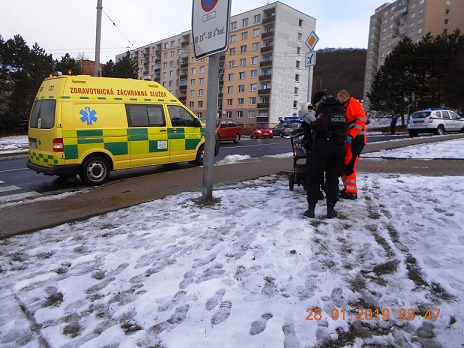 Dne 21.1.2019 v 08,45, vykonávala hlídka strážníků na Severní Terase kontrolní činnost, při které si v ulici Výstupní u kruhového objezdu všimla ženy s kočárkem, která seděla na zemi a v náručí měla malé dítě. Hlídka u ženy zastavila, aby zjistila, co se stalo nebo zda nepotřebuje od strážníků nějakou pomoc. Dotyčná strážníkům sdělila, že upadla na zledovatělém chodníku a při pádu na sebe strhla kočárek i s miminkem. Žena sice neutrpěla žádné viditelné zranění, ale dítě mělo u nosu krev. Hlídka se pokoušela od dotyčné paní zjistit její totožnost a totožnost jejího dítěte, ale to se jí vzhledem k šoku, který žena utrpěla, nepodařilo. Na místo byla přivolána zdravotní záchranná služba, která si ženu i s dítětem převezla do Masarykovy nemocnice k lékařskému vyšetření.