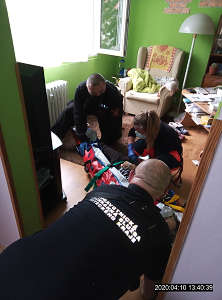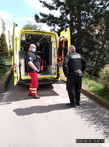 Dne 10.4.2020 v 13,40 hod., telefonovali na tísňovou linku městské policie pracovníci zdravotní záchranné služby, kteří operátora požádali o pomoc při transportu člověka z bytu ve třetím patře v ulici SNP do sanitního vozu. Na místo byla vyslána hlídka strážníků, která zdravotníkům pomohla při snesení osoby vyššího věku do sanitky.