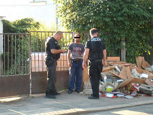 Strážníci hlídají odpad, který na různá místa složili lidé postižení záplavami, před nenechavci.