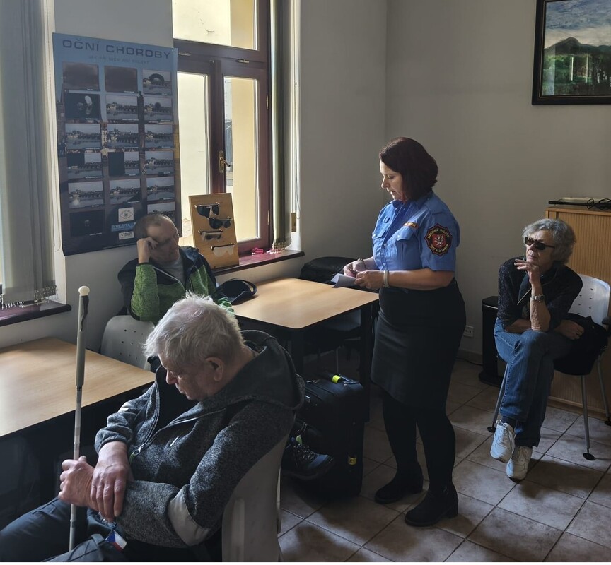 Dne 11. 12. 2025 se uskutečnilo setkání strážníků ze skupiny prevence kriminality a dopravní výchovy Městské policie Ústí nad Labem s nevidomými v jejich TyfloCentru. TyfloCentrum Ústí nad Labem o.p.s. je krajské středisko sociálních služeb pro osoby nevidomé a s těžkým zrakovým postižením, které založila Sjednocená organizace nevidomých a slabozrakých ČR. Setkání a beseda nejen na téma osobní ochrana a bezpečnost majetku je součástí preventivního projektu městské policie „Myslíme na Vás“. Diskutovalo se například o aktuálních problémech handicapovaných, se kterými se ve městě potýkají. Jak uvedla nevidomá účastnice setkání: „Nejčastěji jsou to takzvaná áčka před obchody, náhlé stavební úpravy a výkopy, které nevidomí nemohou včas zaznamenat a vyhnout se jim. Slabozrací se také seznámili s činností strážníků a různými preventivními projekty Městské policie Ústí nad Labem. „Připomínkami a poznatky nevidomých se samozřejmě budeme zabývat“. Nevidomí si od strážníků odnesli různé reflexní předměty potřebné pro bezpečný pohyb v silničním provozu, které pro ně připravilo vedení města.