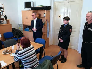 Dne 18. 2. 2020 se uskutečnilo v TyfloCentru další z pravidelných setkání strážníků ze skupiny prevence kriminality a dopravní výchovy Městské policie Ústí nad Labem s občany postiženými zdravotním handicapem. TyfloCentrum představuje místo, kde se schází nevidomí a slabozrací lidé. Spolu se seniory a dětmi patří tato skupina obyvatel mezi nejohroženější z pohledu prevence kriminality. Setkání se uskutečnilo v rámci preventivního programu městské policie „ Myslíme na Vás“. Na programu besedy byla přednáška o ochraně osob a majetku a o bezpečném pohybu tělesně postižených lidí v silniční dopravě. Tohoto setkání se zúčastnil i primátor města Petr Nedvědický, který přišel pozdravit a seznámit přítomné s novinkami v rámci Statutárního města Ústí nad Labem. Ale primátorova přítomnost na tomto setkání nebyla vůbec náhodná nebo zdvořilostní. Primátor svojí přítomností reagoval na dopis, který mu zaslal jeden slabozraký občan, a ve kterém si postěžoval na některé nedostatky, týkající se pohybu postižených lidí slepotou po našem městě. Podle zkušeností zúčastněných jsou pro nevidomé občany největší problémy neoznačené výkopy, lešení, která nemají u země vodící lištu, reklamní poutače typu „A“, umístěné nešetrně na chodnících a nebo na malý počet ozvučených semaforů. Některé podněty handicapovaných se týkaly městské hromadné dopravy, kdy si nevidomí posteskli nad nedostatkem hlásičů v trolejbusech, které informují cestující o názvech zastávek na trase při pohybu trolejbusu. Na závěr setkání předali strážníci všem přítomným tašky s reflexními prvky, které pro ně věnovalo vedení města.