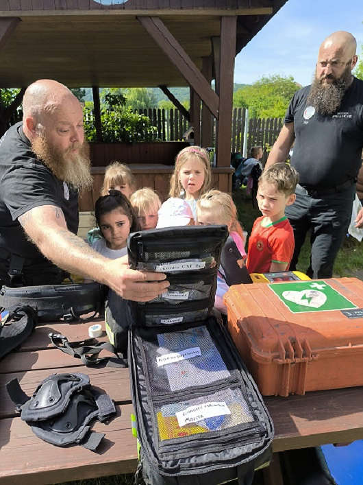S koncem školního roku a nastupujícími prázdninami přibývá žádostí z řad vedení škol o ukázky z činnosti městské policie. Nejen ve školských zařízeních probíhají zmiňované ukázky, ale zájem mají i organizátoři prázdninových táborů. Poslední ukázku z práce strážníků ze skupiny operačního zákroku sledovalo několik desítek dětí z Mateřské školy ze Skorotic. Zde předškoláky nejvíce zaujaly techniky sebeobrany a na vlastní „kůži“ si zkusily základy slaňování a poskytnutí první pomoci.