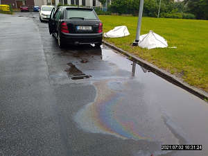 Dne 2.7.2021 v 10.10 hod., byla na žádost operačního střediska městské policie vyslána hlídka strážníků do ulice Stavbařů, kde se měla dle oznamovatele nacházet na vozovce větší olejová skvrna. Hlídka na místě zjistila, že se skvrna nachází na křižovatce ulic Mezní a Stavbařů, a že se jedná o vyteklou naftu. Šetřením bylo zjištěno, že znečištění komunikace je způsobeno defektem vozidla Škoda, jehož řidič strážníkům sdělil, že při provozu vozidla v ulici Mezní mu praskl ventil palivového filtru. Z tohoto důvodu vozidlo odstavil v ulici Stavbařů a sám si na místo přivolal odtahovou službu. Hlídka k případu přivolala hasiče, kteří po kontrole komunikace a rozsahu znečištění, zasypali místo sorbentem. Dále na místo byla přivolána fa. AVE, která komunikaci vyčistila a uvedla do původního stavu.