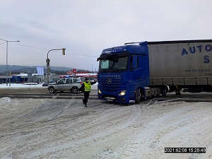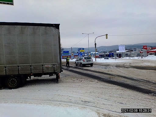 Dne 8.2.2021 v 15,20 hod., byl na žádost operačního střediska městské policie proveden výjezd strážníků do ulice Havířská na křižovatku u Baumaxu, z důvodu usměrňování provozu, kdy projíždějící kamion, který zde zásoboval místní velkoprodejnu, nemohl díky špatné sjízdnosti komunikace řádně manévrovat a tím zastavil provoz na komunikaci. Jelikož řidič kamionu, nemohl bezpečně sjet od Baumaxu směrem k hlavní silnici, bylo nutné při jeho couvání usměrňovat provoz.