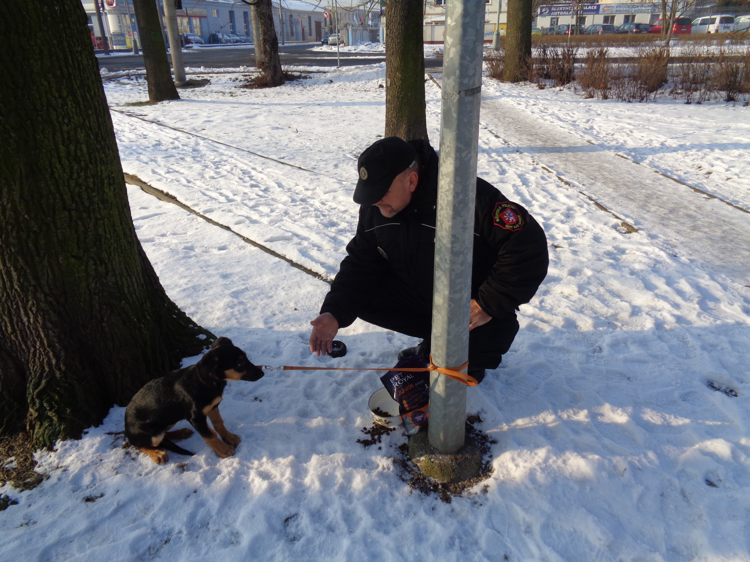 Dne 23.1.2017 v 11,10 hod., prováděla hlídka strážníků pochůzkovou činnost v obvodu krásného Března, kde si v ulici U pivovarské zahrady všimla u stromu uvázaného psa, u kterého bylo na zemi krmení a miska s vodou. Strážníci se pokusili v okolí zjistit majitele zvířete, ale toho se jim nepodařilo zjistit ani ve spolupráci s místními obyvateli. Vzhledem k mrazivému počasí, kdy psovi hrozilo prochladnutí, byl pes strážníky převezen do městského útulku pro opuštěná zvířata, kde si ho převzala odpovědná pracovnice.