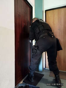 Dne 8.11.2022 v čase 10:25 hod., byla na žádost operačního střediska městské policie vyslána hlídka strážníků do ulice Gagarinova z důvodu oznámení, že na balkoně je zavřená žena a nemůže se dostat zpět do bytu. Hlídka na místě zjistila oznamovatele , který hlídce sdělil, že slyšel, jak na něho volá paní ze druhého patra aby zavolal policii, že její syn ( 1,5 roční ) jí zavřel dveře od balkónu, na kterém se zrovna nacházela. Dále dotyčná žena dala souhlas hlídce, aby otevřela byt. Na místo se dostavili strážníci ze skupiny operačního zákroku, kteří byt otevřeli za pomocí sady na otevíraní dveří ( bez poškození ). Po vstupu do bytu spatřili strážníci jejího syna, který si hrál s hračkami v obývacím pokoji. Následně strážníci otevřeli balkonové dveře a ženu vpustili do bytu. Celá událost se obešla bez zranění.