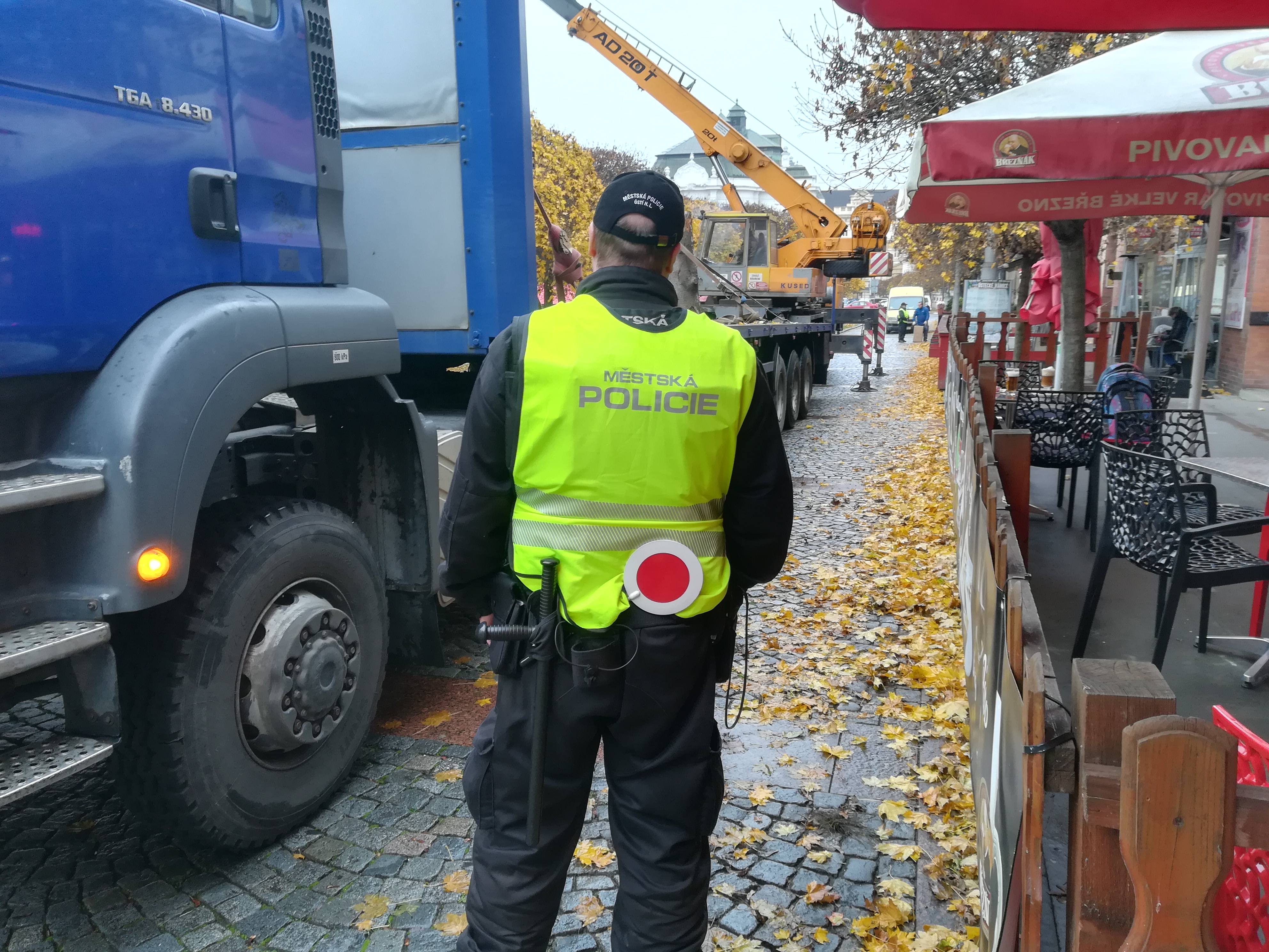 Strážníci dohlíželi na dopravu a instalaci vánočních stromů.