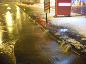 Dne 16.2.2013, v 20,05 hod., telefonoval na tísňovou linku městské policie neznámý muž, který sdělil, že v ulici Přístavní vytéká na vozovku voda. Na místo byla vyslána hlídka strážníků, která zjistila, že voda vytéká na více místech, proto sem přivolala pracovníky SčVak, kteří vodu uzavřeli. Po dobu havárie strážníci usměrňovali provoz a tak udrželi ulici sjízdnou.