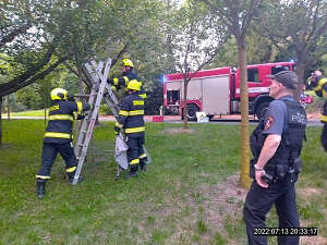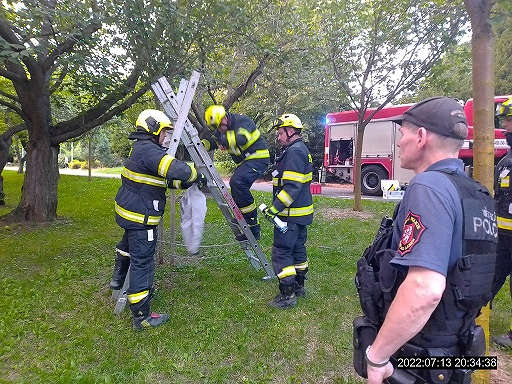 Dne 13.7.2022 v 19.45 hod., prováděla hlídka strážníků kontrolní činnost v parku Družba, kde se ke strážníkům přihlásila oznamovatelka, která strážníky upozornila na vosí hnízdo, které se mělo nacházet na stromě v blízkosti přilehlého panelového domu. Po nalezení zmiňovaného stromu hlídka vyrozuměla přes tísňovou linku 112 hlídku hasičů, kteří na místo dorazili a hnízdo ze stromu odstranili. Hlídka strážníků během hasičského zásahu toto místo na nezbytnou dobu uzavřela proti vstupu nepovolaných osob, a to z důvodu možného ohrožení zdraví kolemjdoucích osob.