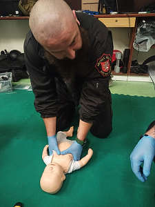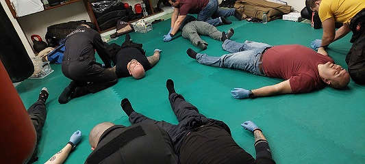 Opakování je matka moudrosti a platí to i na strážníky, kteří pravidelně absolvují prolongační zkoušky a v tomto období si zopakují i poskytnutí taktické první pomoci, Vzhledem k tomu, že hlídky strážníků se poměrně často dostávají do situací, kdy jejich znalosti poskytnutí první pomoci občanovi je nezbytná, školení v tomto oboru je více než na místě. Prvních osm strážníků ze skupiny operačního zákroku absolvovalo toto školení tento týden. Jedná se o strážníky, kteří nejčastěji zasahují při různých konfliktech, nebo vyjíždějí na tísňová volání. Velmi časti asistují i zdravotníkům při jejich výjezdech do terénu. Tato skupina strážníků prošla dne 27.3.2023 zdravotním školením, zaměřeným na poskytnutí první pomoci při masivním krvácení a zajištění funkce oběhového a dýchacího systému, neutralizací nebezpečí pro zachraňující, zjištění mechanizmu úrazu, vybrání vhodné první pomoci a opatření do příjezdu zdravotní záchranné služby. Celý výcvik byl zakončen praktickým testem s použitím veškerých získaných dovedností. Další strážníci budou absolvovat školení první pomoci v nebližších termínech.