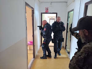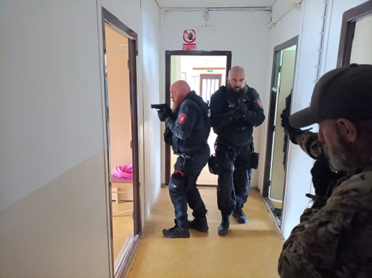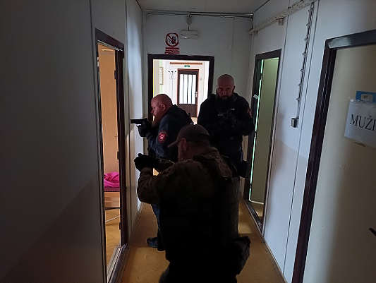 Dne 20.2.2024 v dopoledních hodinách proběhl již třetí v pořadí výcvik strážníků ze skupiny operačního zákroku, který se tentokrát týkal nácviku taktického vstupu do nebezpečné zóny a následného „čištění“ prostorů a místností. I tentokrát dohlíželi na průběh nácviku instruktoři bezpečnostních složek.