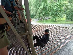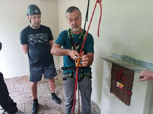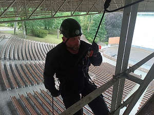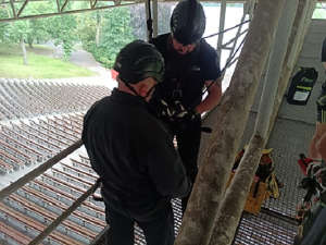 Dne 6.6.2024 v 10,30 hod., proběhlo jedno z mnoha školení strážníků ze skupiny operačního zákroku, tentokrát zaměřený na slaňování a práci s motorovou pilou, kterou strážníci používají ve výškách. Tato školení jsou velmi potřebná, neboť zmiňovaní strážníci velmi často vyjíždějí k případům, kdy nastane situace, že se někde vyvrátí strom a ohrožuje bezpečnost osob, nebo hrozí pád suché větve, například na elektrické vedení. Samotné slaňování bylo nacvičováno v objektu Letního kina. Nácvik lezeckých technik je strážníky využíván také při slaňování k osobě, která potřebuje pomoc a je v bytě, kam se nedá dostat jinak, než právě slaněním, například ze střechy domu nebo z balkonu jeho sousedů.