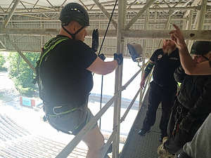 Dne 30.5.2023, proběhlo v prostoru Letního kina cvičení ve slaňování, kterého se zúčastnili strážníci ze skupiny operačního zákroku. Výcvik byl tentokrát zaměřen na slaňovací techniky a zacházení s novými lezeckými pomůckami. Dále byly probrány způsoby navazování a jištění při práci ve výškách. Těmto nácvikům je věnována zvláštní pozornost, neboť práce při slaňování k lidem, kteří potřebují pomoc je velmi náročná a nebezpečná a neodpouští žádné chyby. Záchrana lidských životů a zdraví je prioritou všech strážníků a strážníků ze skupiny operačního zákroku, kteří provádějí slanění k lidem, kteří potřebují jejich pomoc obzvlášť. Práce je to zodpovědná jak vůči zachraňovaným, tak i k sama sobě. Zde nelze podcenit žádná rizika a nebezpečí, která se k této práci váží a opomenout sebemenší maličkost by mohlo mít fatální následky. Vedle výcviku ve střelbě patří nácvik slaňování mezi nejnáročnější úkony, které strážníci městské policie pravidelně absolvují.