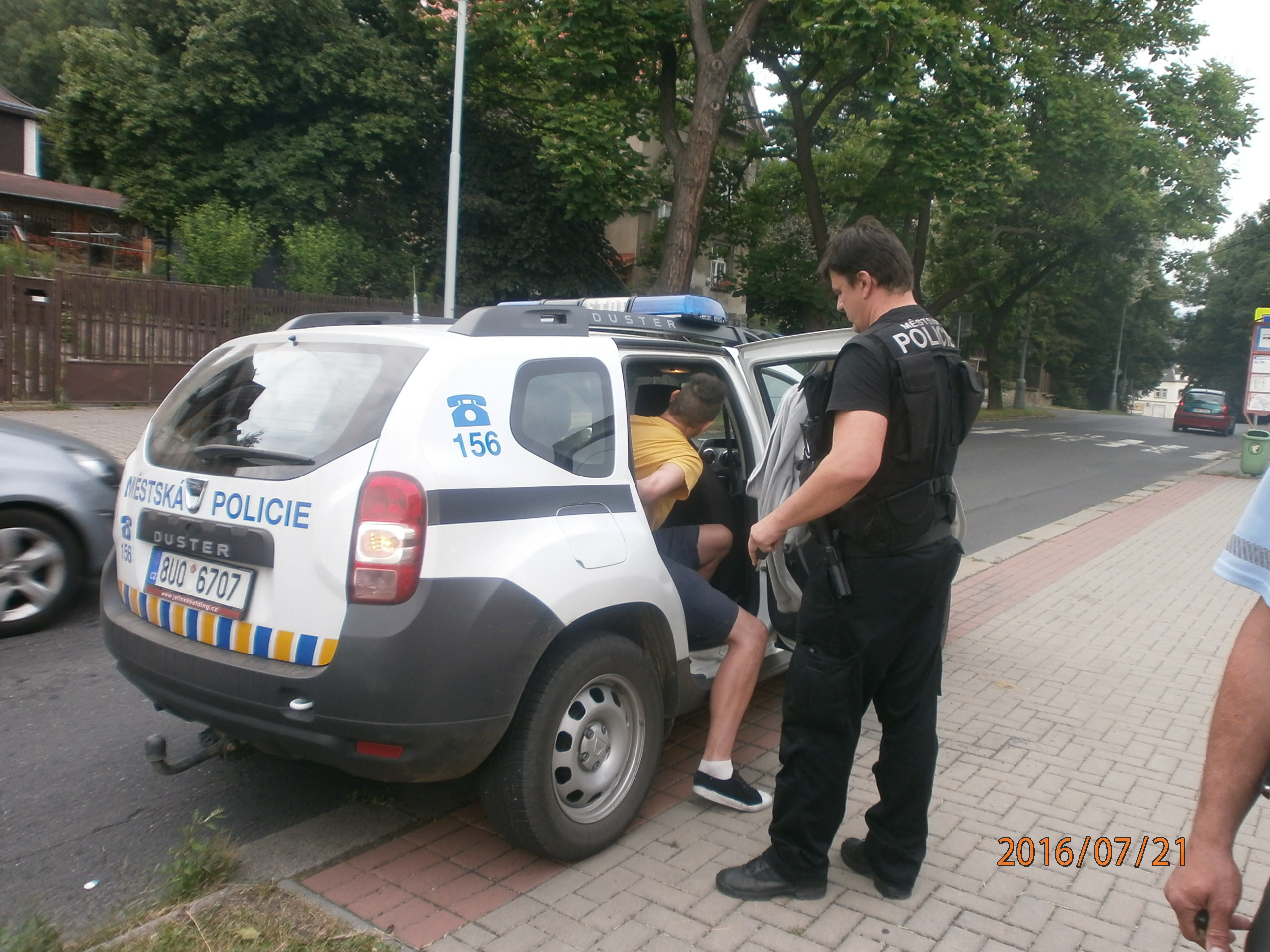 Dne 21.7.2016 v 14,30 hod., byl na žádost operačního střediska městské policie proveden výjezd strážníků do Azylového domu v ulici Štefánikova, odkud na tísňovou linku městské policie telefonoval pracovník zmíněného zařízení, který operátorovi nahlásil fyzický konflikt mezi klienty zařízení. Strážníci na místě zjistili, že k potyčce došlo mezi Marianem L.(1986) a Michalem Ch.(1988), a to kvůli odcizenému mobilnímu telefonu a tabletu, které patřily panu L., a který ze ztráty vinil Michala Ch. Z důvodu podezření ze spáchání trestného činu krádeže a po zklidnění situace byla na místo přivolána Policie ČR, která si celý případ převzala k dořešení.