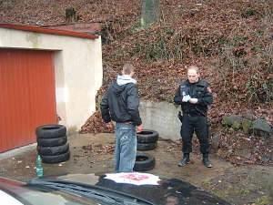 Dne 16.1.2014, v 12,15 hod., byl proveden výjezd strážníků do garážového dvora v ulici Božtěšická, kde neznámý muž přehrabuje hromadu uskladněných pneumatik a zanechává po sobě značný nepořádek. Na místě strážníci zadrželi Radka J.(1986), který své počínání obhajoval tvrzením, že některé pneumatiky jsou ještě dobré a on je hodlá použít na svém vozidle. Strážníci muže donutili nepořádek po sobě uklidit a z místa ho vykázali. Po zadokumentování celé události, byla tato předána k dořešení příslušné přestupkové komisi.
