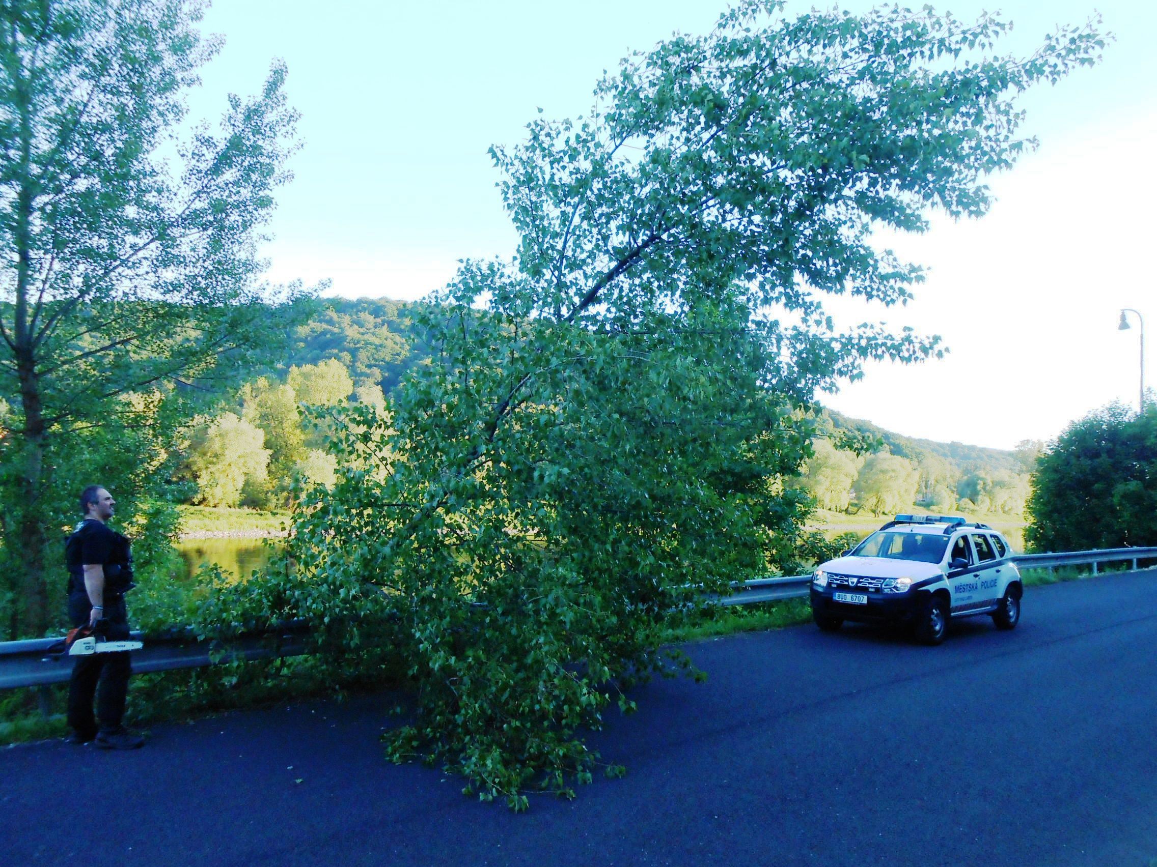 V ulici Veslařská strážníci museli rozřezat vyvrácený strom.