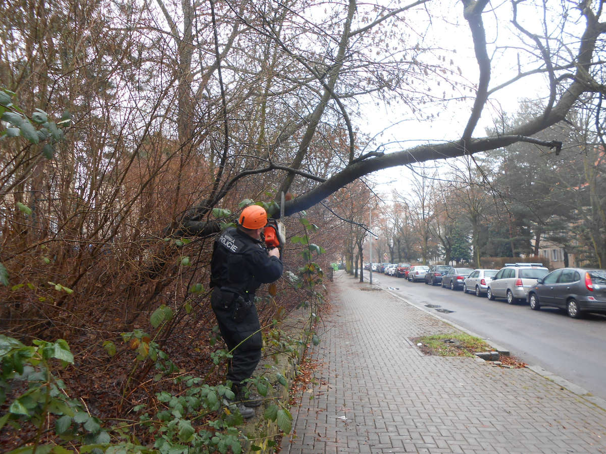 Dne 6.1.2018 v 09,25 hod., byl na žádost operačního střediska městské policie proveden výjezd strážníků ze skupiny operačního zákroku do ulice Resslova, odkud na tísňovou linku městské policie telefonoval oznamovatel, který operátorovi sdělil, že ve zmíněné ulici se nachází vyvrácený strom, který ohrožuje bezpečný pohyb po místním chodníku. Strážníci na místě vyvrácený strom pořezali a místo zprůchodnili.