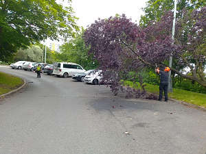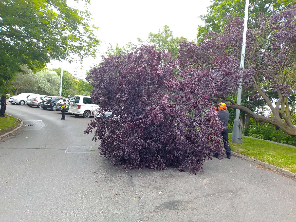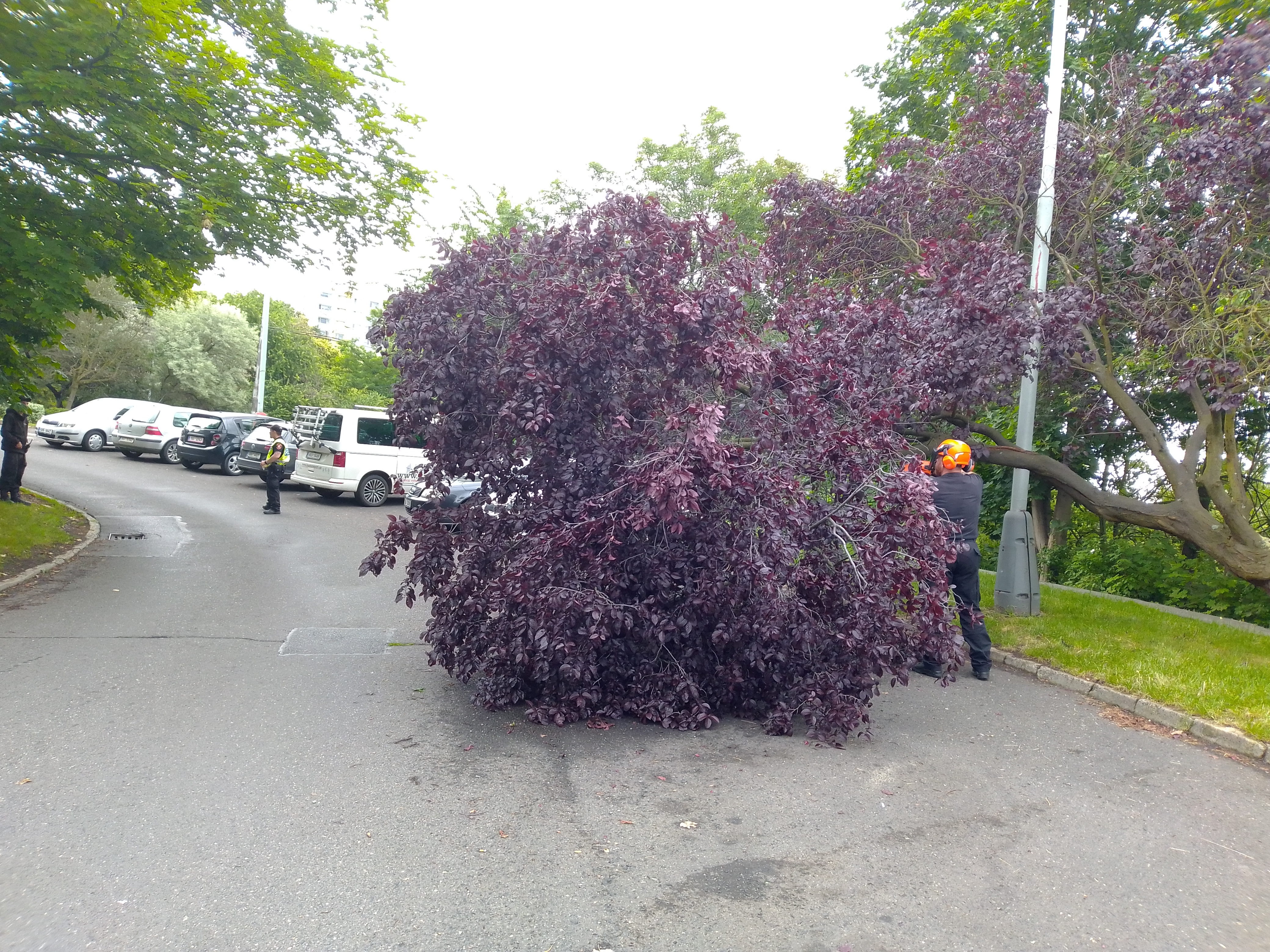 Dne 30.6.2021 v 10:30 hod., prováděla hlídka strážníků z obvodu Severní Terasy kontrolní činnost v ulici Jana Zajíce, kde spatřili částečně vyvrácený strom, jehož zlomená větev zasahovala do komunikace a ohrožovala bezpečnost a plynulost silničního provozu. Na místo byla přes operační středisko přivolána hlídka strážníků ze skupiny operačního zákroku, která za pomoci motorové pily strom rozřezala a odklidila z komunikace na zatravněnou část u chodníku. Po dobu řezání a odklízení stromu, usměrňovali strážníci dopravu, aby nedošlo k poškození projíždějících vozidel.