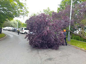 Strážníci při pochůzkové činnosti zjistili v ul. Jana Zajíce částečně vyvrácený strom.