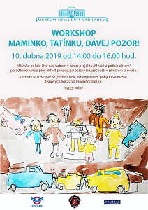 Městská policie Ústí nad Labem uspořádala v Muzeu města Ústí nad Labem odpolední workshop, na téma „Maminko, tatínku, dávej pozor!“. Akce je spojena s výstavou výtvarných prací dětí z mateřských škol v Ústí nad Labem. V prostorách muzea jsou vystaveny obrázky dětí na téma bezpečnost v silničním provozu. Strážníci probírali spolu s návštěvníky muzea možná rizika a správné vzorce bezpečného chování v silniční dopravě. Účastníci workshopu obdrželi od preventistů drobné reflexní prvky, které pro ně věnovalo vedení města. Celá akce byla součástí celoročního preventivního projektu Městské policie Ústí nad Labem „MP dětem“.