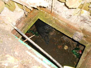 Strážníci zachraňovali psa, která spadl do jímky.