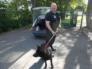 Dne 25.5.2017 v 16,31 hod., telefonoval na tísňovou linku městské policie oznamovatel, který operátorovi sdělil, že v lese u ulice Výstupní, za zastávkou MHD, se nachází nějaký pes, který zde zřejmě spadl do jímky a bez cizí pomoci se nemůže dostat na svobodu. Strážníci na místě zjistili, že se jedná o mladého vlčáka a pomocí odchytové tyče se jim podařilo zvíře dostat z jímky. Po vizuální kontrole, zda zvíře není zraněno, byl pes strážníky odvezen do městského útulku pro opuštěná zvířata, kde byl předán do péče tamních zaměstnanců.