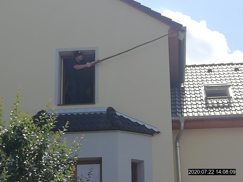 Dne 22.7.2020 ve 13:35 hodin, vyjížděla hlídka strážníků ze střekovského okrsku do ulice Kojetická, odkud strážníkům telefonovala oznamovatelka, která jim sdělila, že v uvedené ulici má po okapem jejího domu hnízdo vlaštovka, která je zřejmě zraněná. Hlídka na místě zjistila, že pták se zamotal do plastových provázků, které si nanosil na hnízdo a nedokázal se z nich sám uvolnit a připoután za nohu visel ze střechy domu. Do jeho záchrany se zapojili mimo strážníků i sousedé z okolních domů, od kterých se podařilo získat česač na ovoce a s jeho pomocí následně nebohého opeřence bezpečně odchytit. Až poté vyšlo najevo, že se nejedná o vlaštovku, ale o rorýse, který nebyl viditelně poraněn. Pak už jen stačilo ptáčka vystříhat z provázku, který měl namotaný na nohách a kolem krku a vypustit ho zpět do volné přírody.